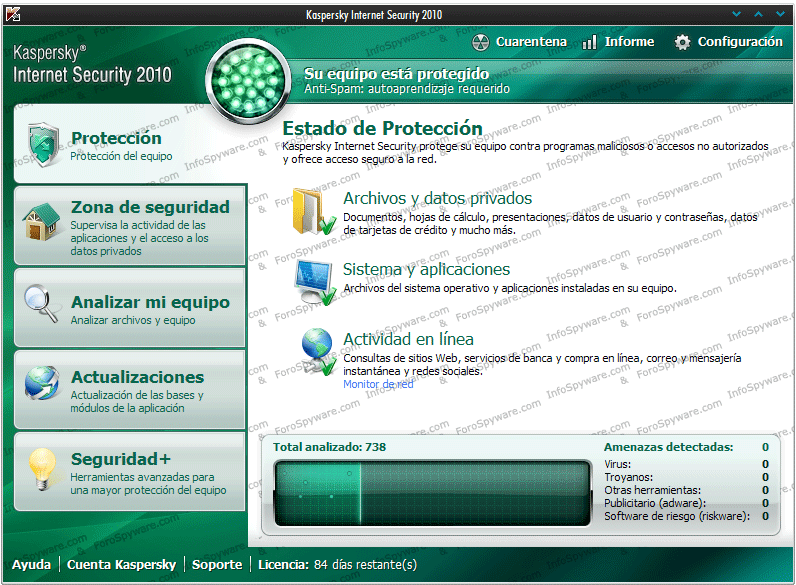 Kaspersky Internet Security 2010 Protección completa de Seguridad en Internet con tecnologías Anti-Virus, Anti-Spyware (programas espías), Anti-Phishing (sitios fraudulentos), Anti-Spam (correo electrónico no deseado) y Anti-Hacker (piratas informáticos).